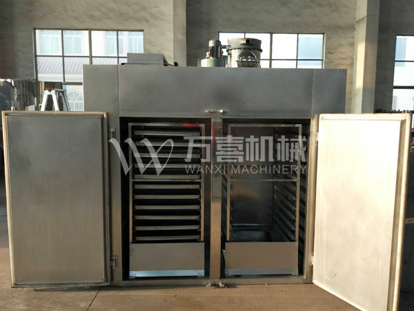 型号规格 | 每次干燥量(kg) | 风机功率(kw) | 耗用蒸气(kg/h) | 烘车(set) | 烘盘(只) | 宽×深×高(mm) | 上下温度(℃) |