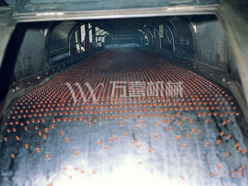 本产品是一种新型(熔融性)成型造粒机。采用薄钢带传热和雾化喷淋冷却使熔融液得到迅速固化成型,采用单机旋转外壳。因此维护方便、磨损极少、生产率高。装卸和更换产品快捷。且落模成型机和钢带同步运行因而可以高速生产均匀的锭粒,提高生产率,增加生产利润。且能消除粉尘,改善了环境,显著扩大了粘度范围。该产品是一种经济而可靠的生产工艺,能够加工Φ4-12mm的颗粒,这些产品十分均匀,呈半球状、条状和片状,稳定、无热应力而且纯度质量都很高。由于设备自带过滤清堵装置运行更可靠。