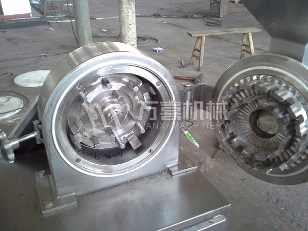 本机组利用活动齿盘和固定齿盘间的相对运动,使物料经齿冲击、摩擦及物料彼此间;冲击而获得粉碎。粉碎好的物料经旋转离心力的作用自动进入捕食袋,粉尘由吸尘箱经布袋过滤回收。该机按“GMP”标准设计,全部用不锈钢材料制造,生产过程中无粉尘飞扬。且能提高物料的利用率,降低企业成本,目前已达到国际水平。