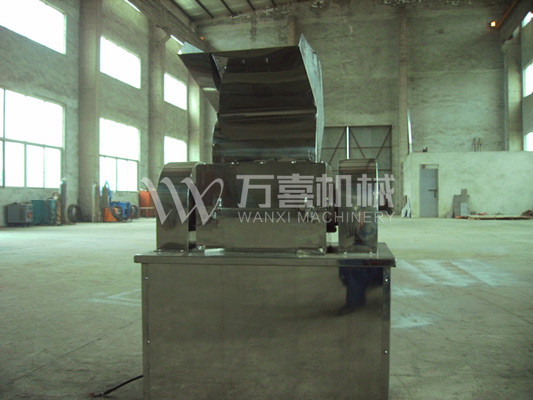 物料由进料斗送进粉碎室,经刀刃和刀座的冲击,旋转刀和固定刀同时剪切粉碎,由于受到旋转离心力的作用,物料自动从出口处流出。