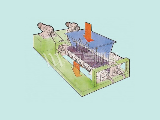 产品介绍◎槽形成型机: 由加料斗和刻有槽的二根辊子构成。以增大物料表面积的造粒为目的。物料被内侧运转的辊子吸入,被反转的外侧刮刀切成粒状。◎水平挤出成型机: 由加料斗、二根辊子和U形振动网构成。以增大物料的表面积为目的,造粒物料与振动网接触,由旋转辊子的强制压力挤出网外,形成圆柱形的颗粒。◎辊式造粒机: 由加料斗、二根辊子和振动网构成。以增大物料面积为目的的制粒机。物料与振动网接触,通过辊子左右往返运动强制将物料挤入网中,形成圆状形的颗粒。