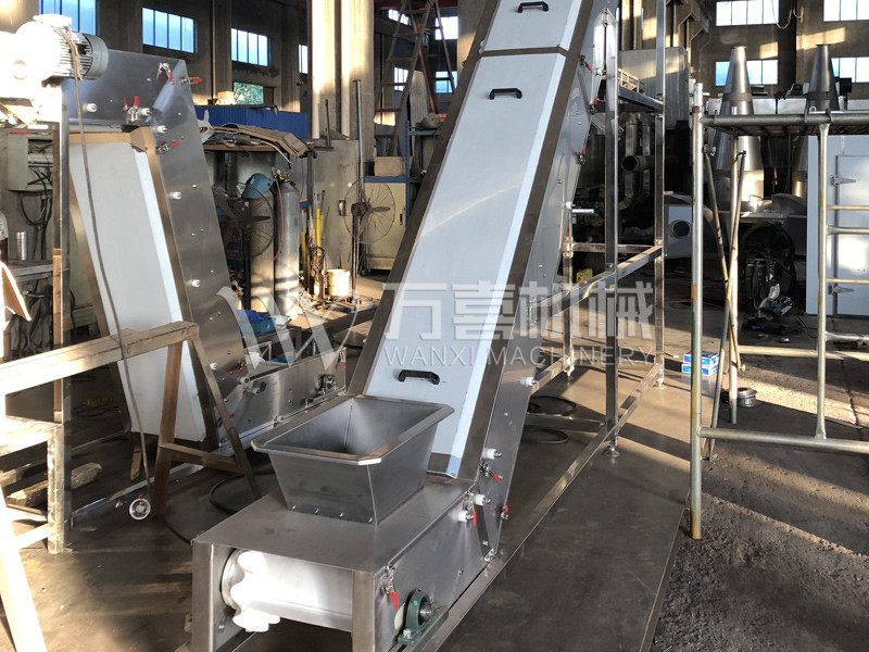 皮带输送机主要由机架、输送皮带、皮带辊筒、张紧装置、传动装置等组成。机身采用优质钢板连接而成,由前后支腿的高低差形成机架,平面呈一定角度倾斜。机架上装有皮带辊筒、托辊等,用于带动和支承输送皮带。